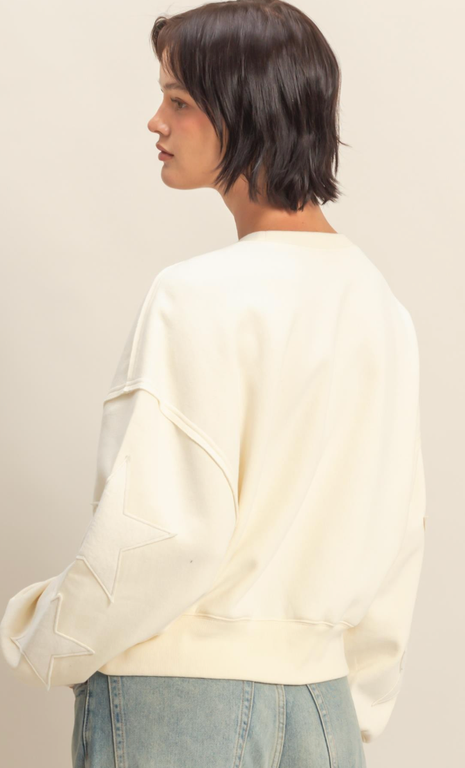 Laid-back, cozy, and just the right amount of cool-girl edge! This oversized sweatshirt is all about effortless style with its relaxed fit and subtle star detail on the sleeves. Made from ultra-soft fabric that feels like a dream, it’s one of those pieces you’ll never want to take off. Comes in two perfect colors — because one just isn’t enough!
