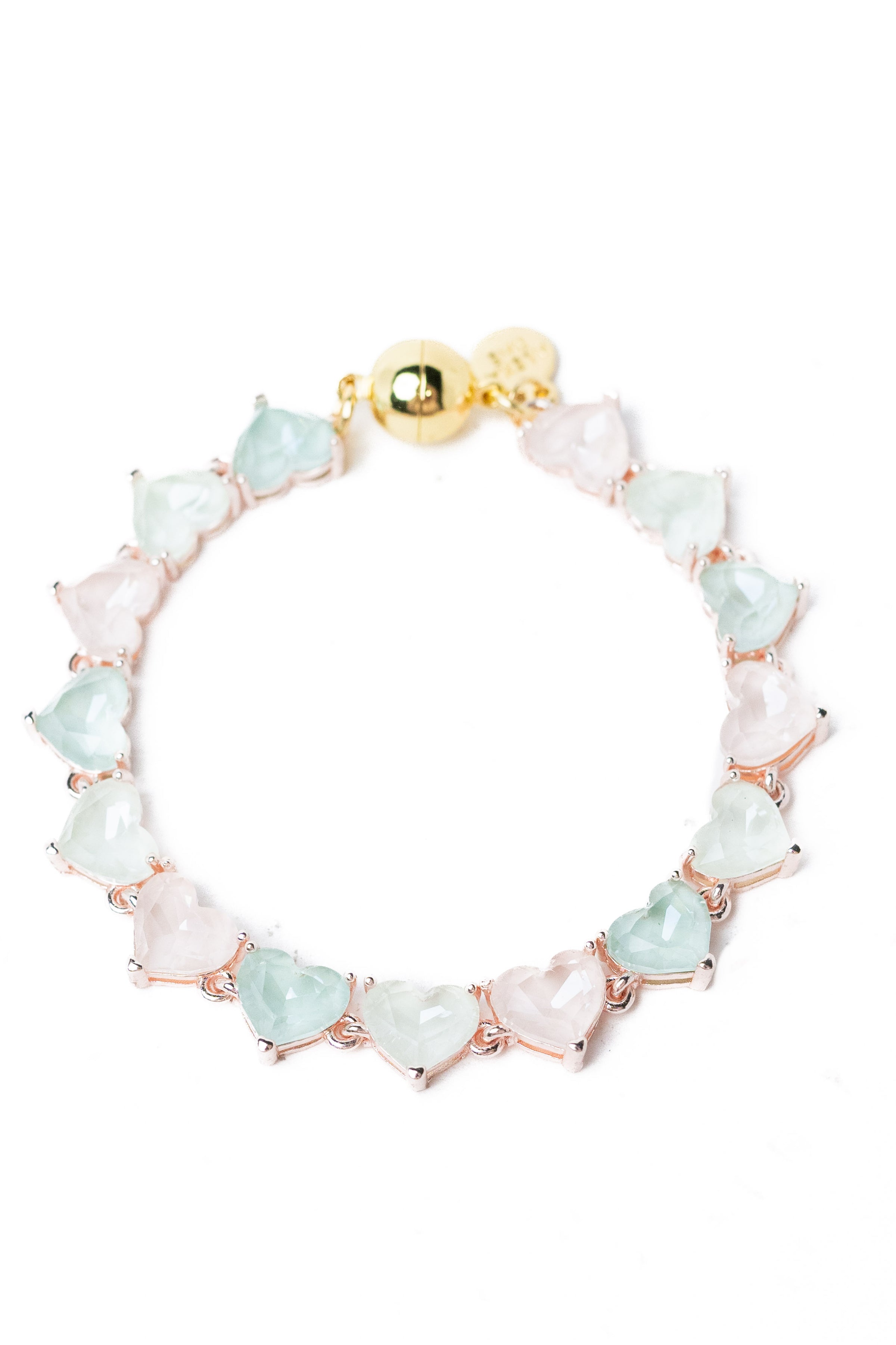 Spread the love with the Thoughts Of You Bracelet in vibrant metallic coconut moonblush! This eye-catching accessory features delicate heart detailing that captures sweet sentiments in style. The secure magnetic clasp keeps your bracelet perfectly in place all day long, whether you're out with friends or making a statement solo. Playful, meaningful, and impossible to miss—this is the bracelet that says it all without saying a word.