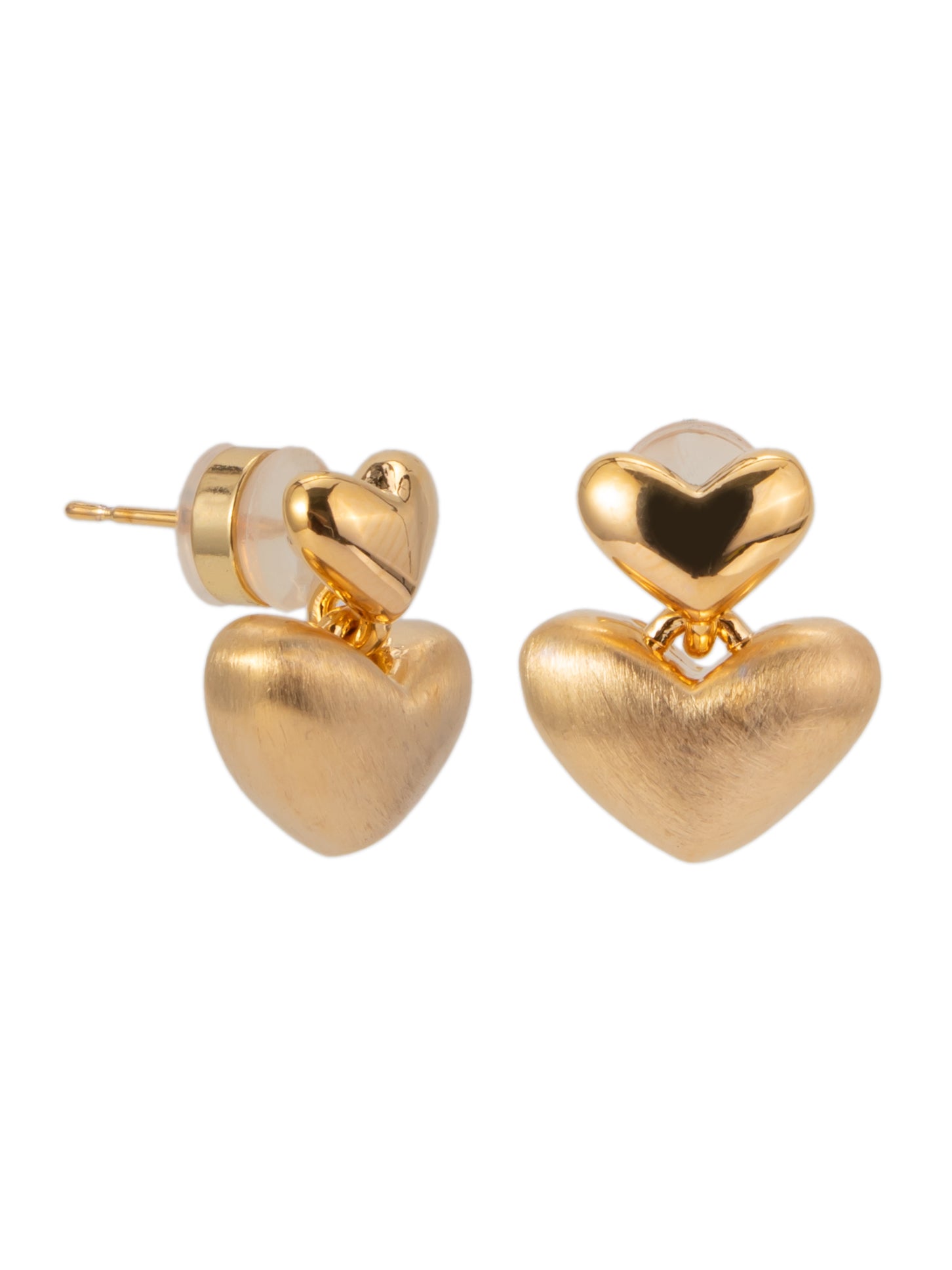 Our Ti Amo earrings are the sweetest heart-shaped dangles, featuring a chic matte gold coloring. Lightweight with a secure post back closure, they hang beautifully and are totally obsession-worthy—we are in love!