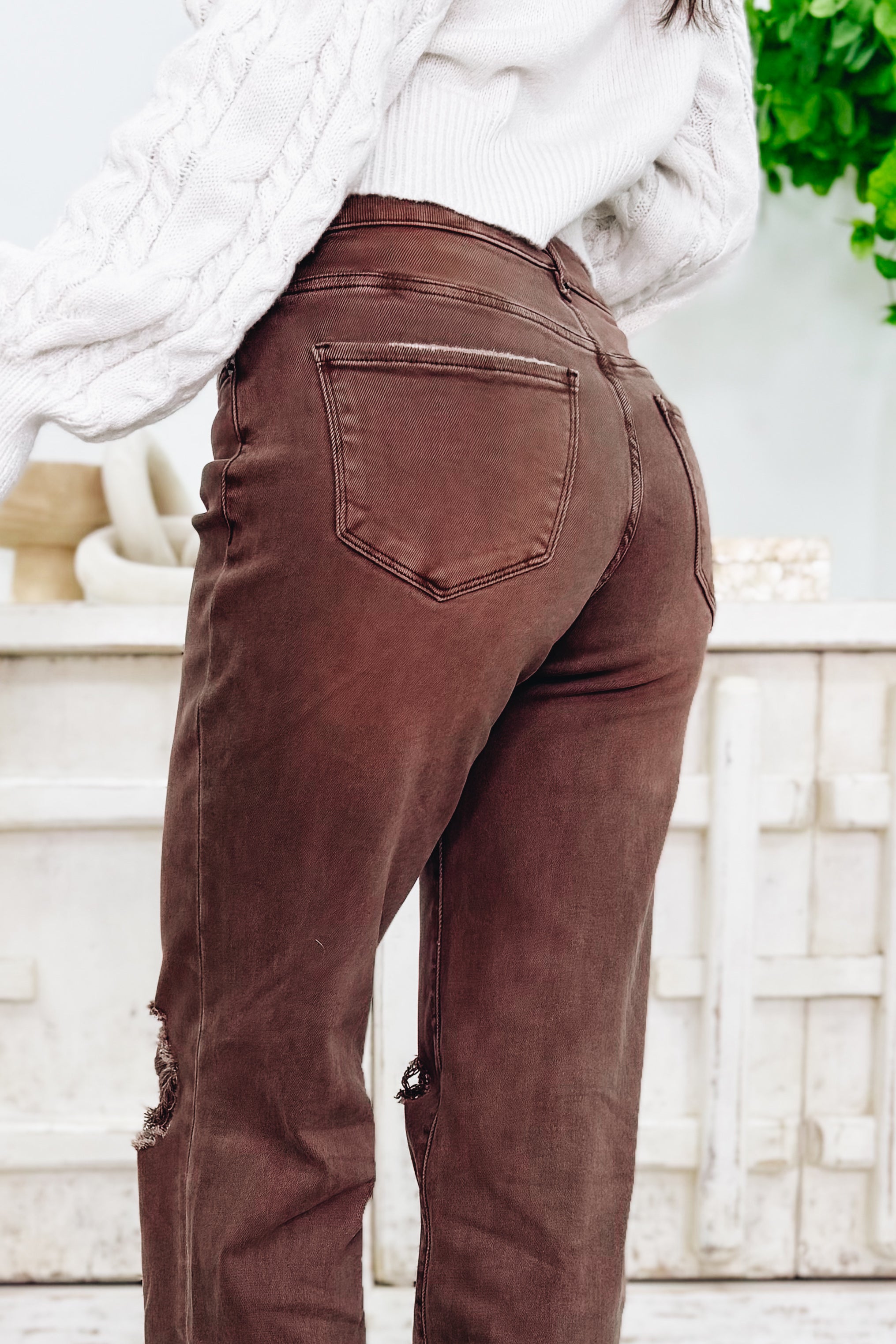True Obsession By Denim BAR Label - High Rise Wide Leg Tummy Control Jeans - Brown
