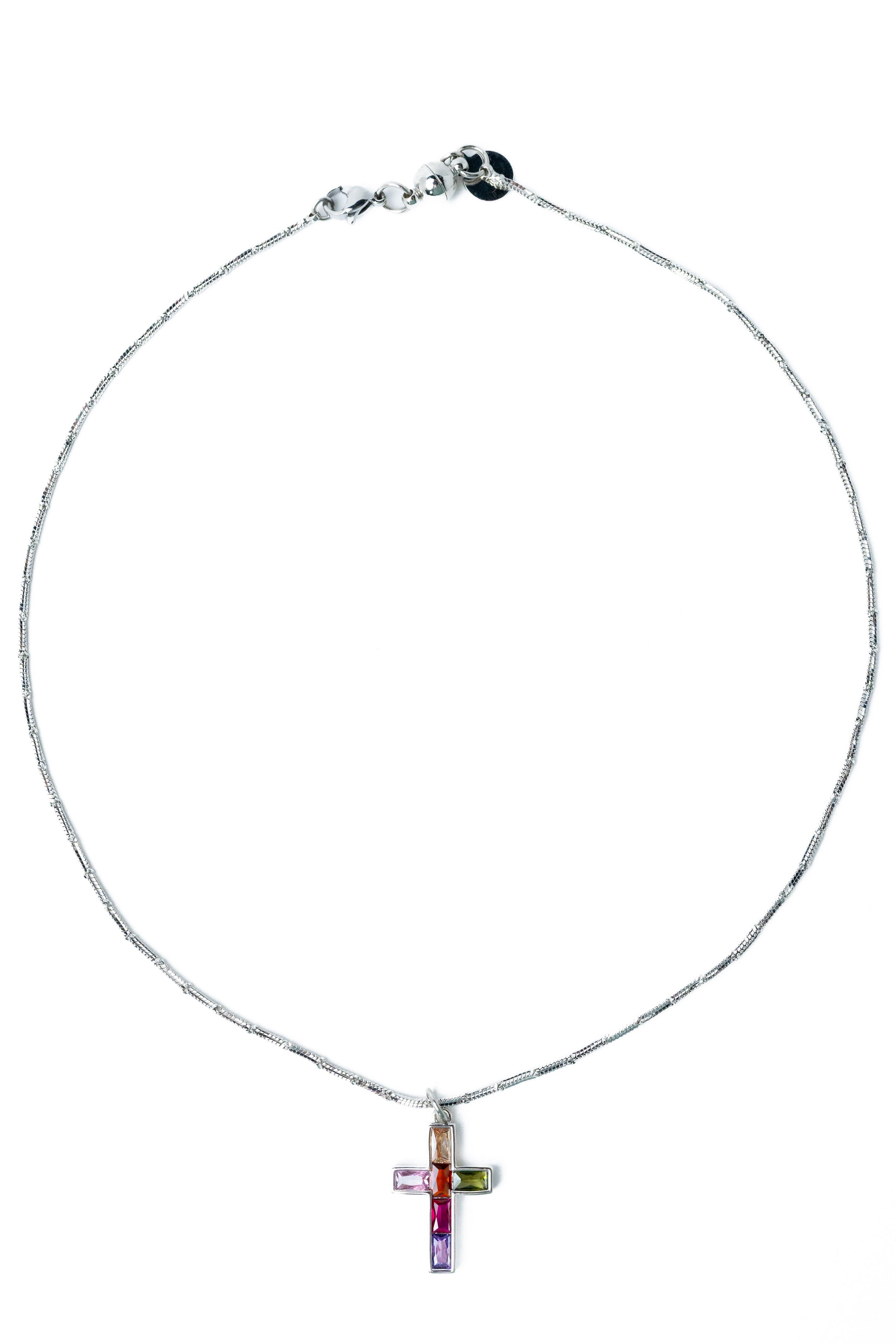 Bold, beautiful, and full of grace — meet the Valeria Necklace, your new statement of faith and style. Featuring a radiant multi-colored crystal cross pendant, this piece shines with every movement, catching the light in the most stunning way. The gold and silver coloring adds a timeless versatility, while the magnetic clasp and 3" extender ensure a comfortable, effortless fit. Lightweight yet eye-catching, the Valeria Necklace is the perfect mix of modern charm and meaningful beauty — a true must-have in every jewelry lover’s collection.