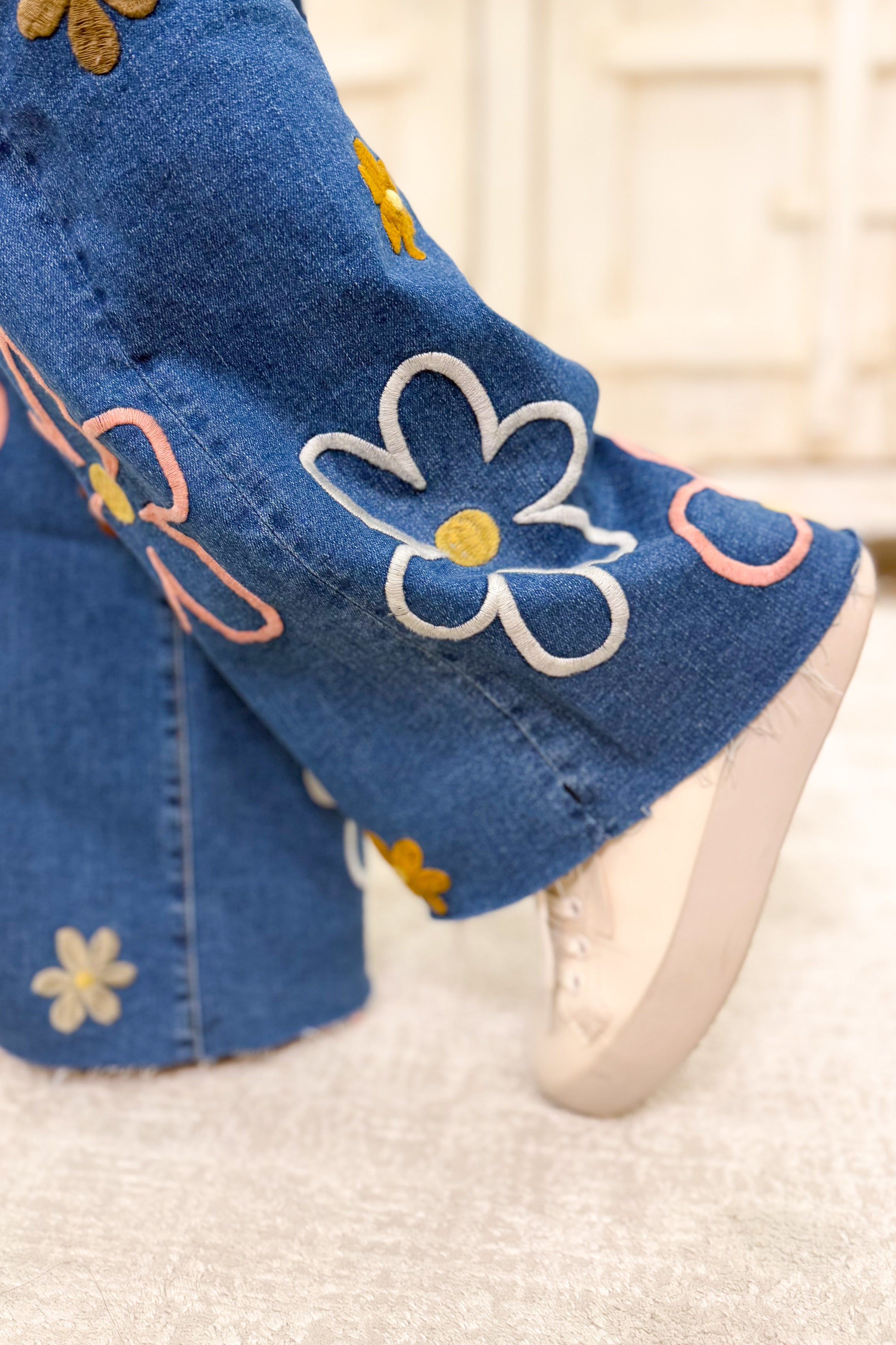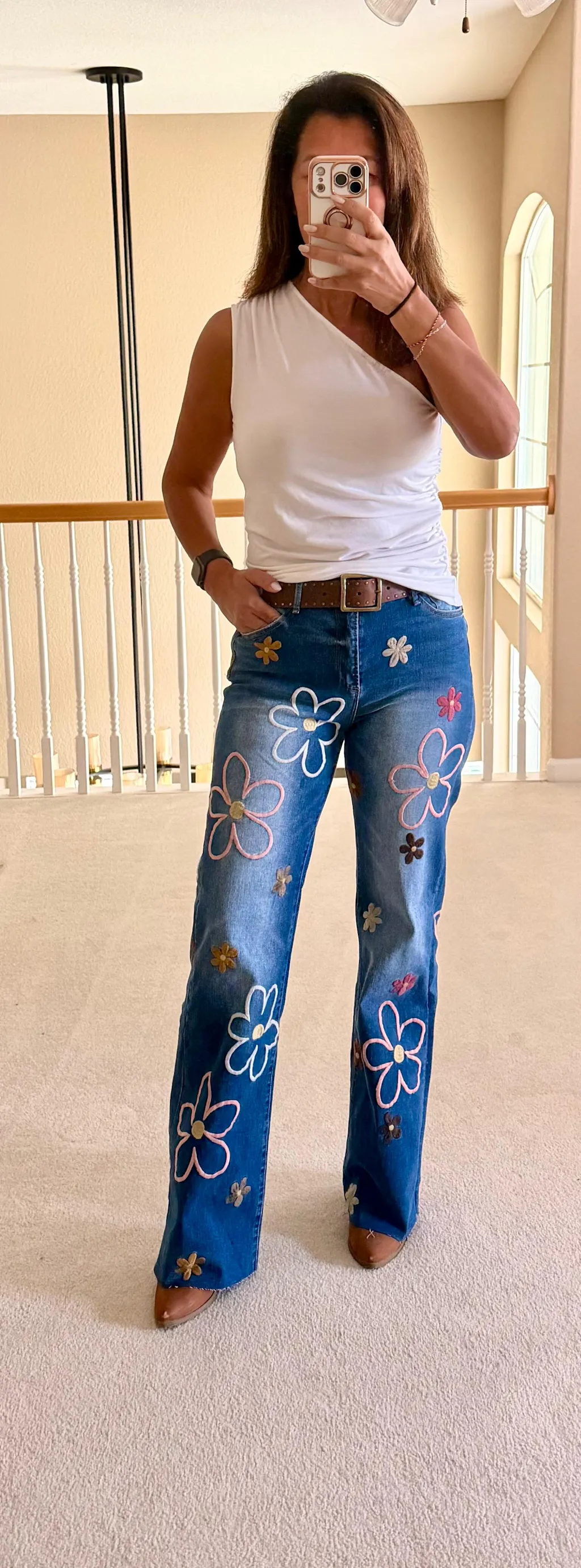 Soft stretch denim that hugs your curves and keeps its shape, finished with delicate daisy embroidery that instantly makes your outfit feel styled. These are the jeans you reach for when you want something fun, flattering, and easy to wear without overthinking it.