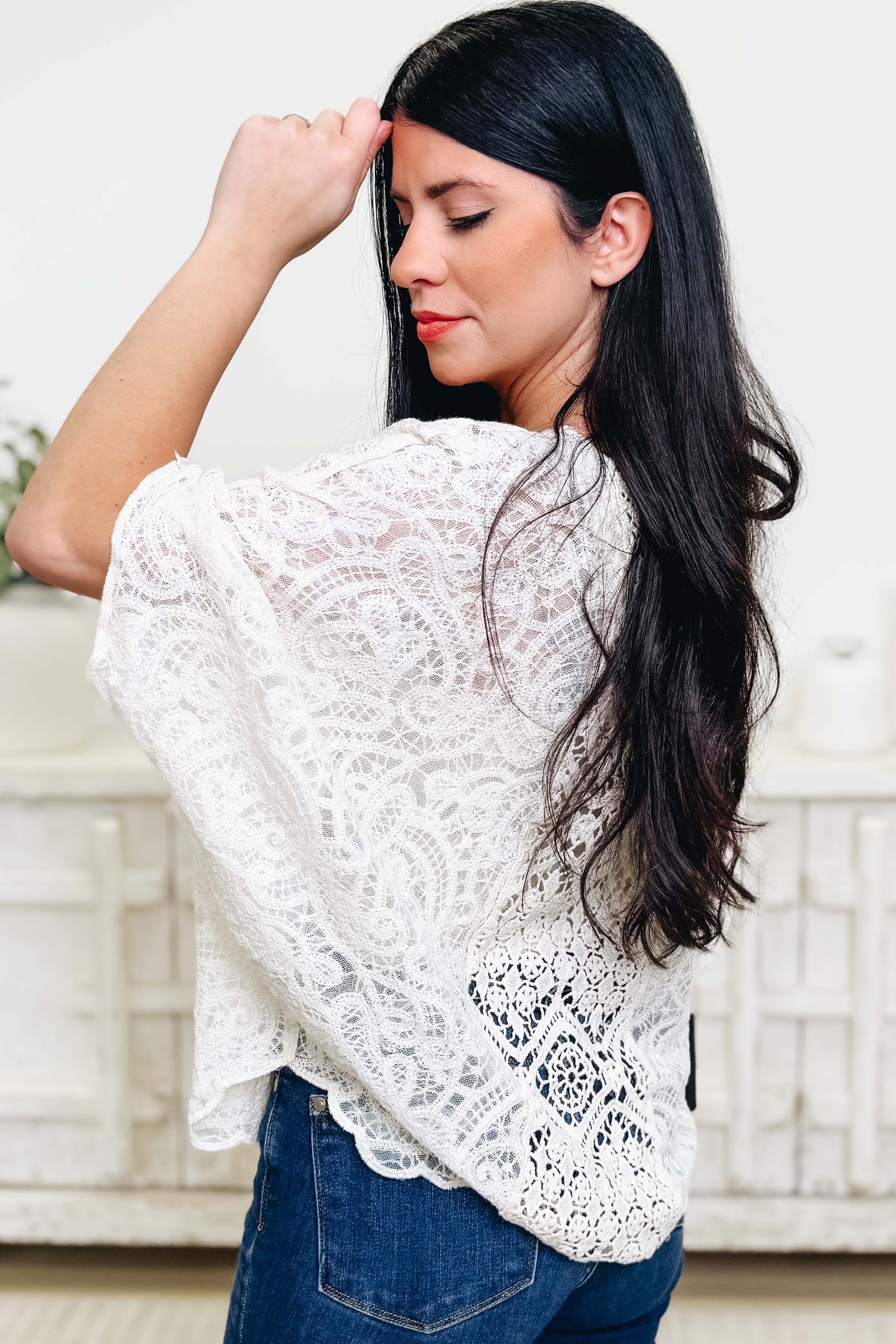 This is the most perfect crochet knit top and we are obsessed. It’s breathable, soft, and lightweight with the prettiest texture. The coverage and cut are just right—flattering, easy to wear, and perfect for layering or styling on its own. Effortless, comfy, and such a standout piece for the season.