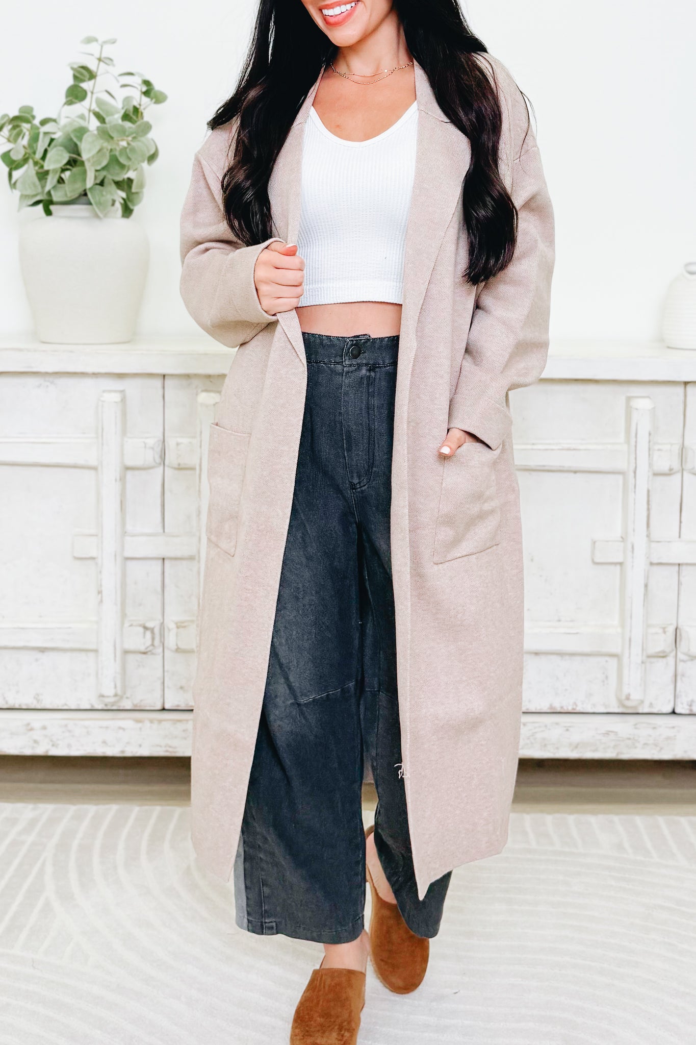 This coatigan is absolute perfection! The fabric is super soft and stretchy, giving it that effortless flow and elegant drape we love. It hangs open beautifully with the perfect amount of coverage, making it easy to dress up or keep casual. Chic, comfy, and totally timeless — this piece is pure perfection! 🤍✨