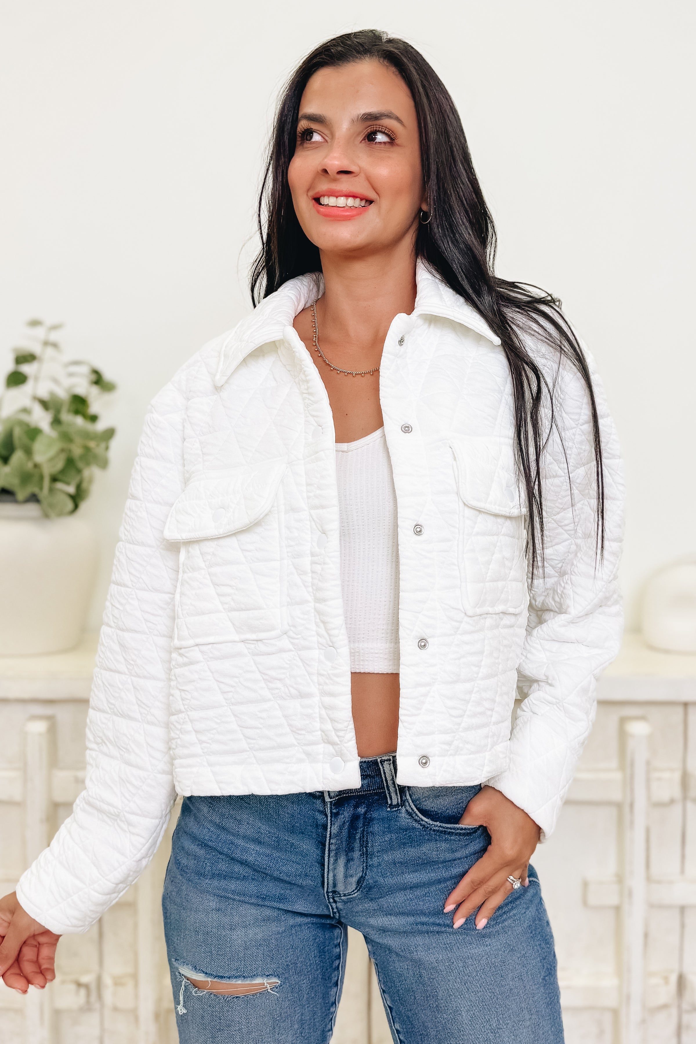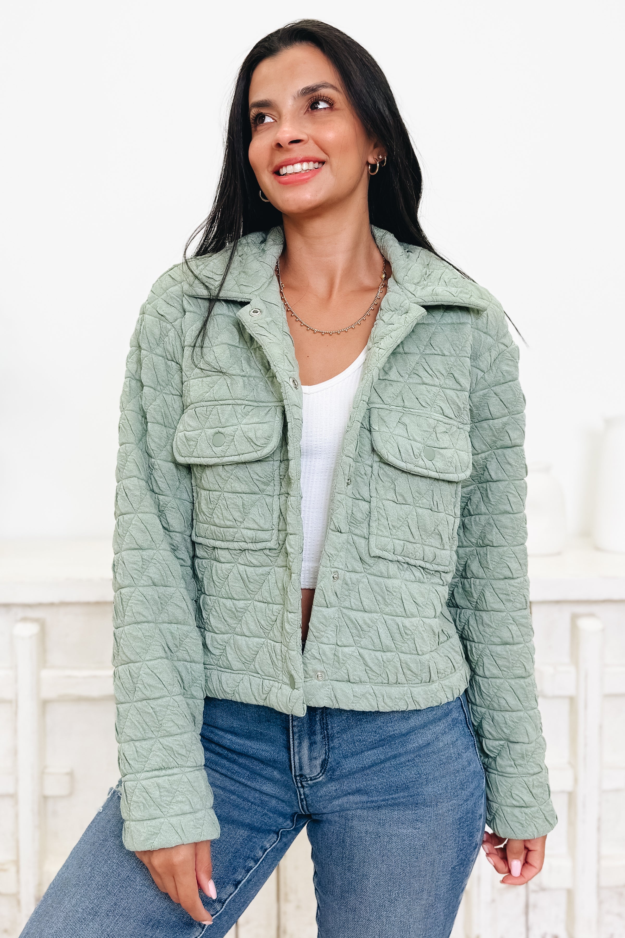 This is the ultimate puffy quilted jacket! Super soft and comfy, it features the dreamiest lining, perfect colors, and sleek snap buttons. With an ideal length and a flattering, cozy fit, this jacket is both cute and effortlessly stylish. Totally obsession-worthy—we can’t get enough!
